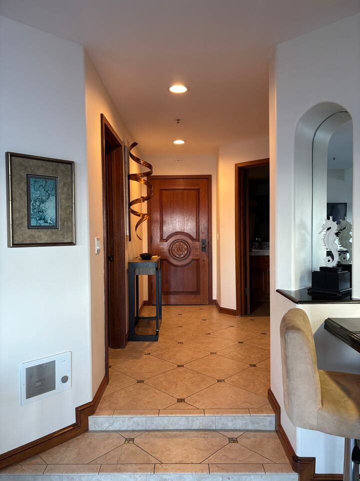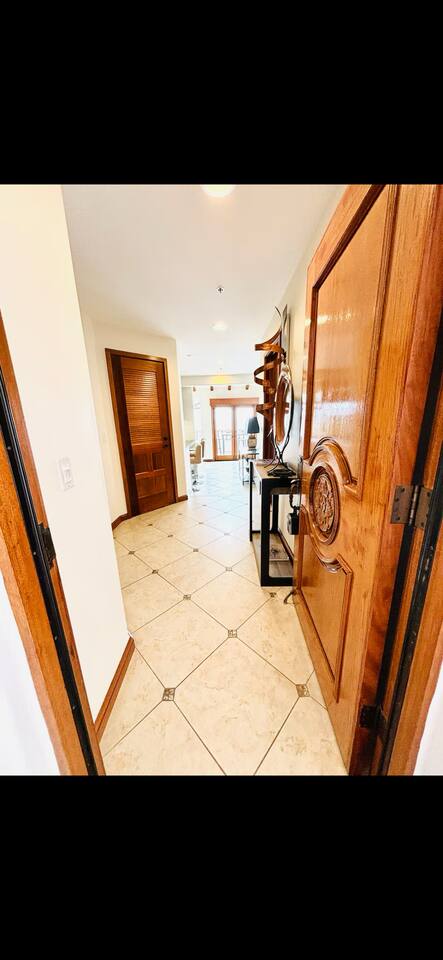 This unit is best accessed from the road above the building. This is also where the golf cart is parked.