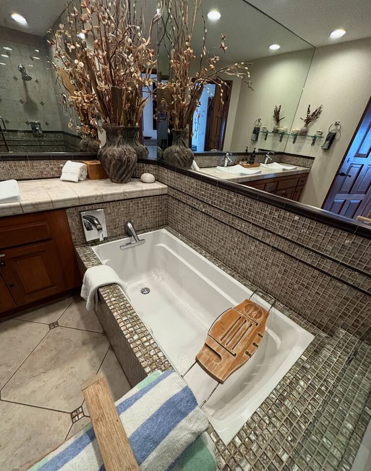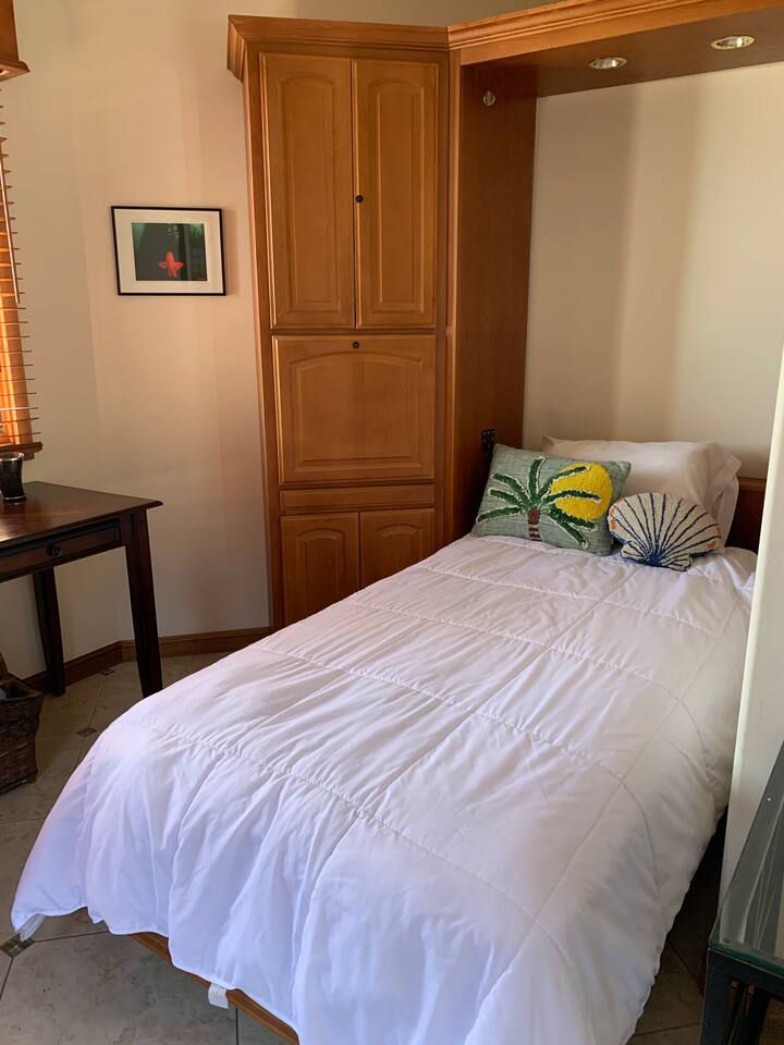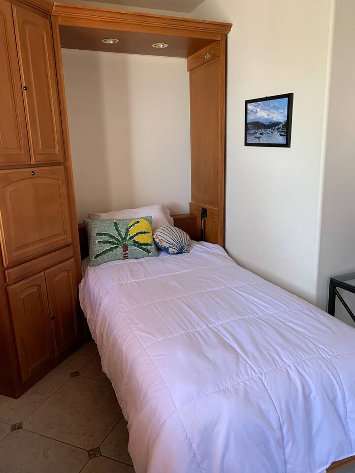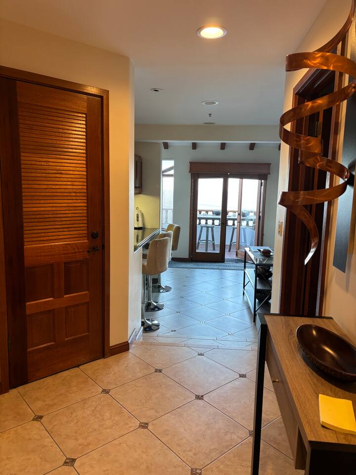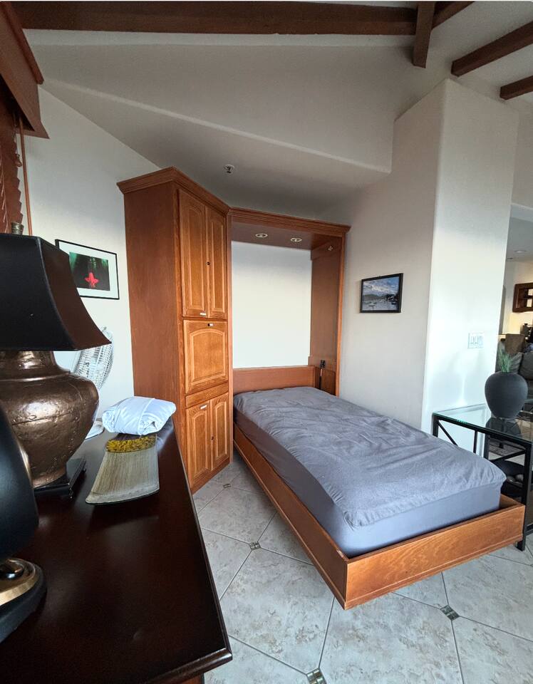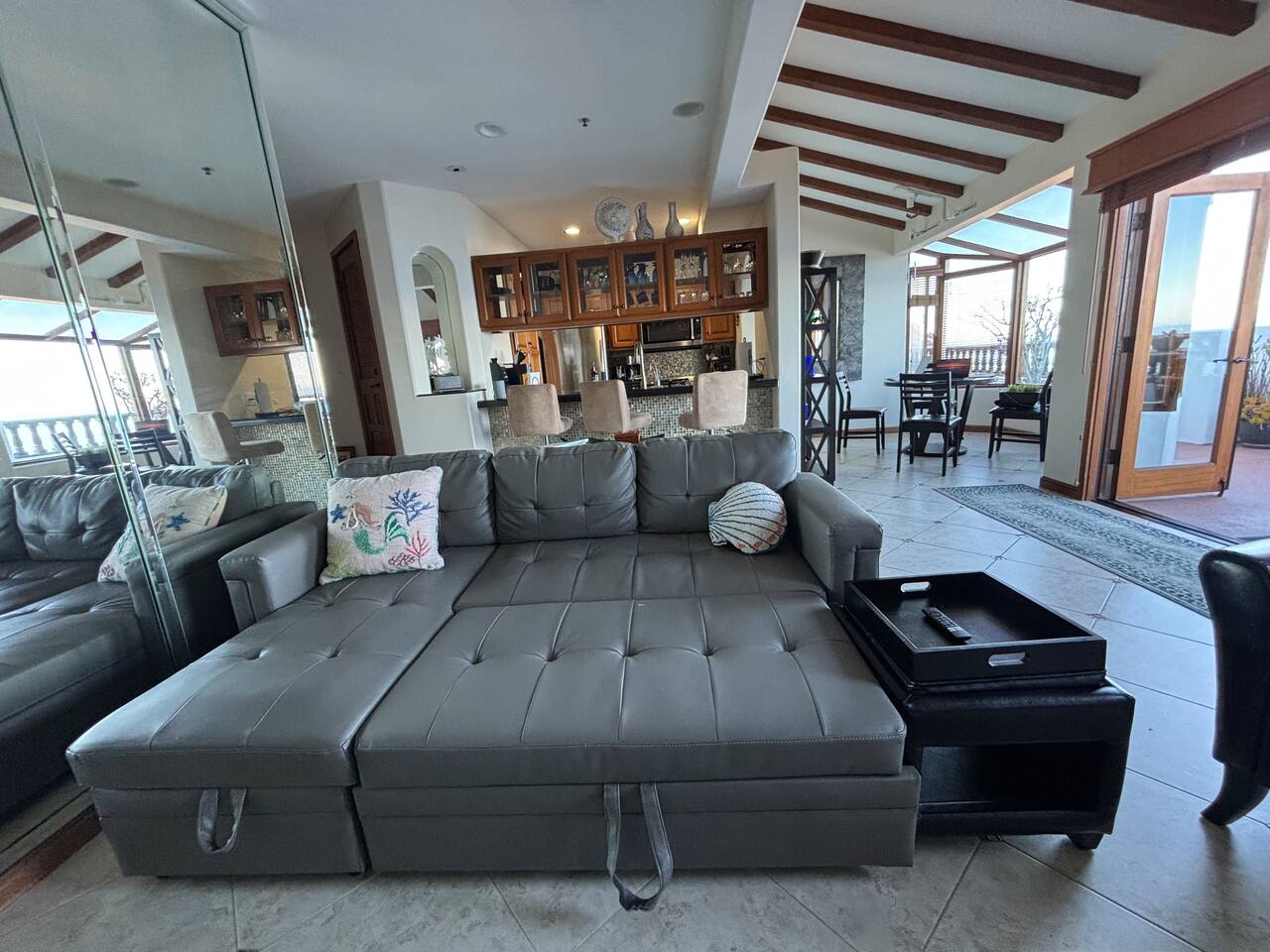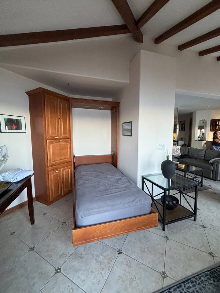 This corner unit provides the a little extra room as compared to other units in the community. There are no neighbors on one side allowing for extra privacy. There is one bedroom with a king size bed. There is a bonus area with a murphy style twin bed. And the living room couch pulls out to a double bed. The home has a beautiful recently remodeled extra large bathroom that includes a separate tub and shower along with a private toilet area. The kitchen has also been recently remodeled with new appliances. The kitchen table is located in a bay window area allowing you to enjoy the beautiful views. There is a table on the balcony allowing you to sit outside enjoying the views. There is also comfortable chairs for you to enjoy while on the balcony